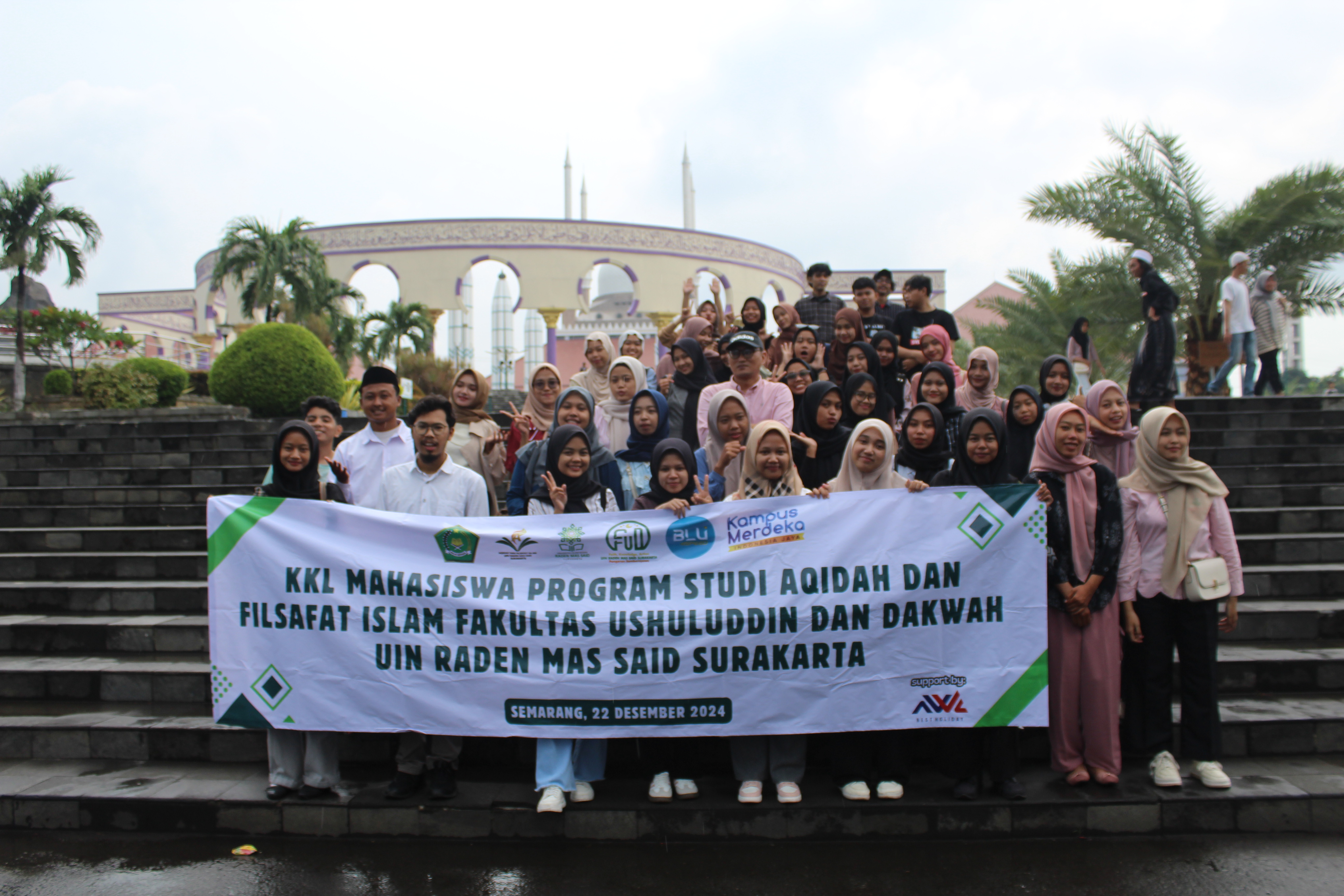 Program Studi Aqidah dan Filsafat Islam, Fakultas Ushuluddin dan Dakwah, UIN Raden Mas Said Surakarta, sukses mengadakan program Kuliah Kerja Lapangan (KKL) di kota Semarang. Kegiatan ini berlangsung pada Desember 2024 dengan diikuti oleh 62 mahasiswa yang didampingi langsung oleh Koordinator Program Studi Aqidah dan Filsafat Islam, Bapak Krisbowo Laksono, M.Hum.